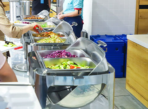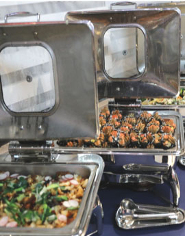 每天就餐人数100多人,现场提供菜品加热保温及分餐服务。